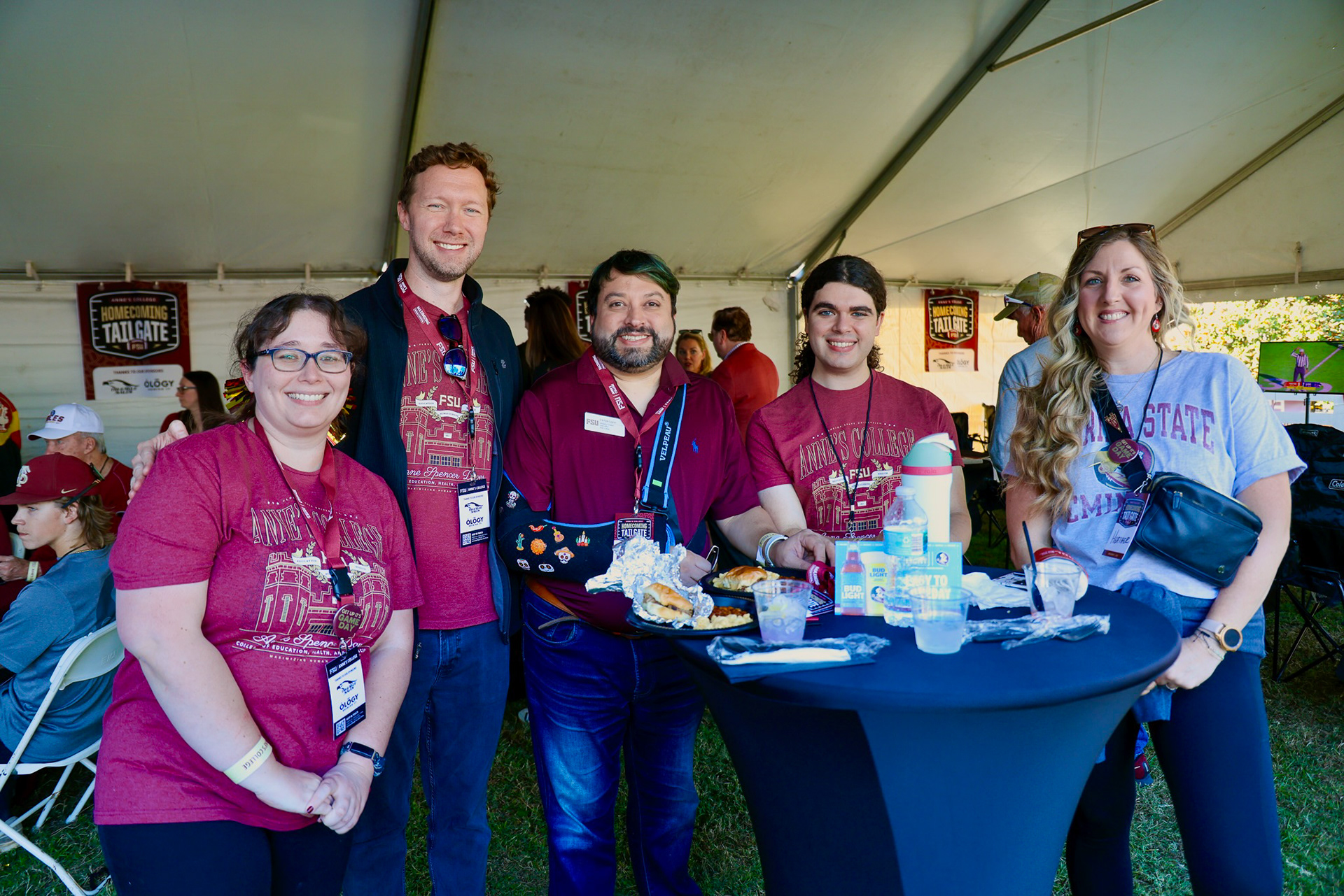 The day after the Dedication Dinner, the college welcomed over 300 alumni and friends to the Homecoming Tailgate. Attendees enjoyed complimentary food and drinks right outside Doak Campbell Stadium. Upon arrival, guests received a wristband, credential, lanyard, and drink koozie. For this project, I produced invite and marketing assets, signage, and credentials. It was important that many assets could be reused, so the main event graphic didn't include a year.